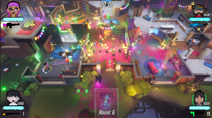 I created the backbone systems of the game, including the rounds, spawning & progression system, a parameter based weapons system, and tools to allow for new gameplay effects [“Chaos Cards”] to be quickly prototyped and implemented.